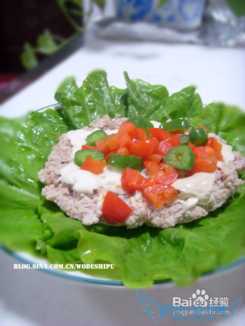 做完以后一看,色彩不是太好。为了能增加色彩我就加了一些生菜,还有爆炒的辣椒呢。(*^__^*) 嘻嘻……