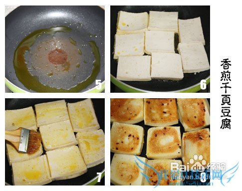 3、 煎至时小火慢煎,千页豆腐易熟,火大易糊。