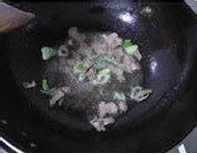 第二步:锅预热,加油,把肉片放入翻炒,炒至变色,加入葱花,姜末爆香