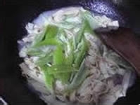 第四步:待锅中汤快干时,加入尖椒,盐,翻炒几下,加入蒜末,鸡精,用水淀粉勾芡,起锅即可