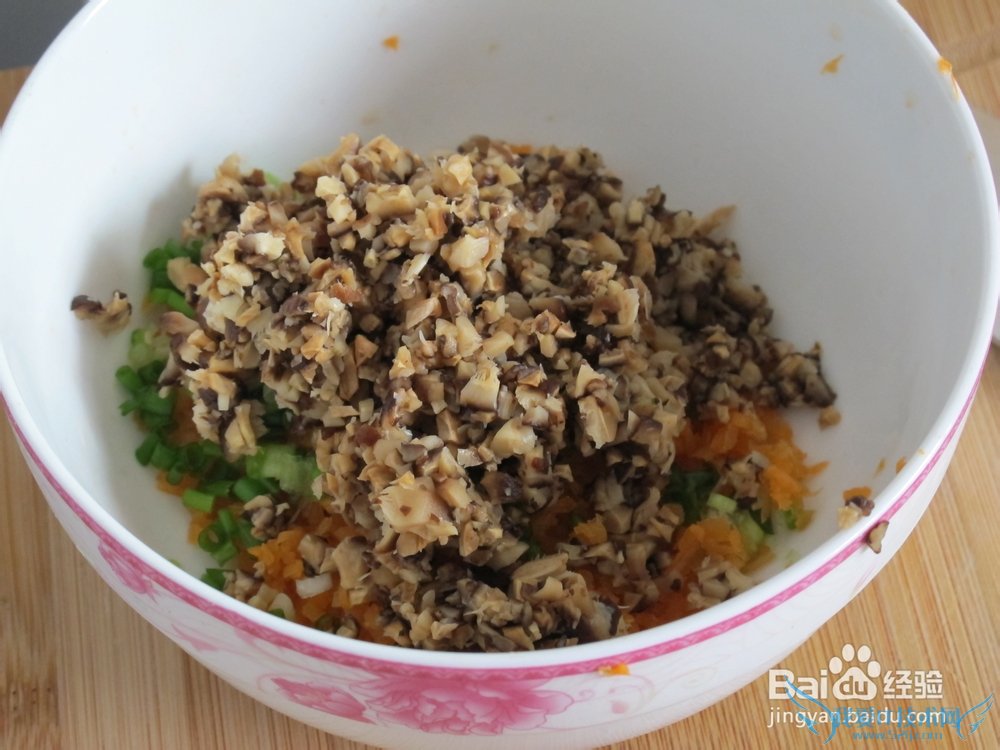 1. 胡萝卜、香菇,葱剁碎备用
