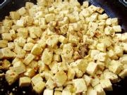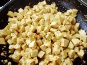 4. 将豆腐丁翻炒均匀后,加入精盐,五香粉。