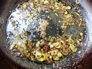 2. 葱姜切成末,热锅放油放入葱姜末,辣椒油爆香。
