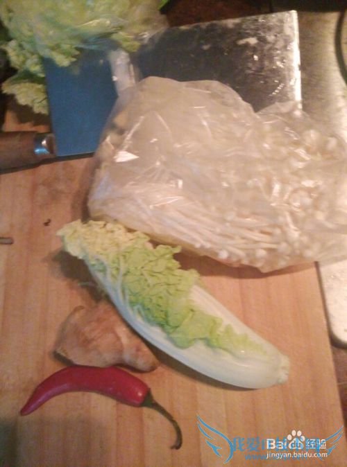 首先我们先准备食材,青菜,生姜,苦瓜,酸菜鱼包等等。先把青菜清洗,生姜切片。青菜两半。