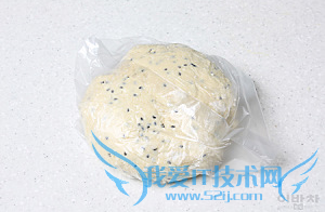 4. 用塑料膜将面团包住后放入冰箱里发酵30分钟,