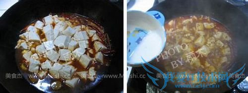 豆腐切块,锅中烧水,水90度时倒入豆腐,热浸15分钟捞出豆腐控尽水待用。锅中底油,油热放豆瓣酱和辣椒酱翻炒,炒出香味,锅中加点水,加些盐,少些酱油,水开倒入豆腐。大火烧开,中火稍炖,入味了就可以勾芡起锅。面上撒点葱花即可。勾芡就是... >>详细
