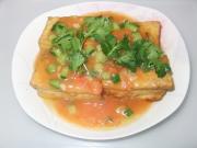 ¹øÄÚ·ÅÈëÓÍ£¬ÉÕÖÁ°Ë³ÉÈÈʱ£¬½«¶¹¸¯Öð¿éϹøÕ¨¡£