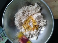 倒入豆油,豆油要多放一点,不仅颜色好看,而且味道比较好。搅拌均匀。