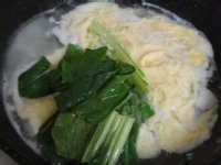 鸡蛋2个 豆腐1盒 小松菜2隻 鸡精粉适量 胡椒粉适量 盐巴适量
