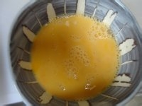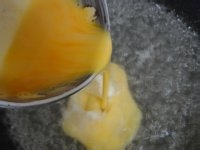 4.蛋液放入锅中。