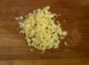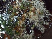 5. 锅中留少量油,把蒜末、葱花和干辣椒末一起倒入,加盐小火煸出香味。