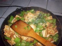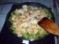煎豆腐 配料:水豆腐、葱、香菜、生抽。 1、炒锅加热后倒一些花生油在锅里; 2、把水豆腐一块块放到锅里煎; 3、待两面都成黄色时,倒入生抽,并把葱切段和香菜一起放入锅里焖一会儿; 4、起锅就OK啦(注:因生抽是咸的,所以不用加盐味道就很好... >>详细