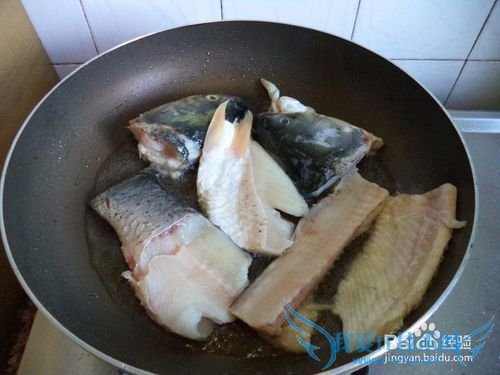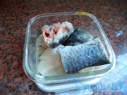 鱼头,鱼骨,鱼尾处理干净,斩大块。