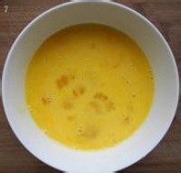 7.鸡蛋打散成蛋液,可加适量水,使鸡蛋炒出来更嫩