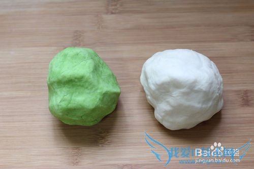 200g面粉加110g菠菜汁,揉成菠菜面团。200g面粉加100g水,揉成白面团。醒面30分钟。