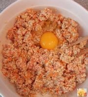 放一个鸡蛋在混合好的原料里,加调料,要不停搅拌,混合均匀。