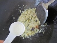 小火煮半分钟,加入蚝油,白糖,少许老抽拌匀