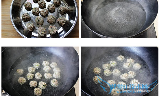 5、锅中烧水,水热未沸腾时,即将丸子放入锅中,转小火慢慢加热,等丸子浮出水面,即可关火,水中加入少许盐、醋和胡椒粉调味