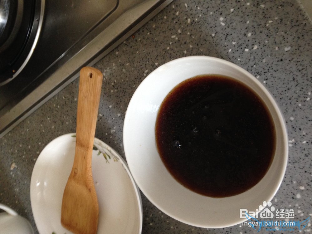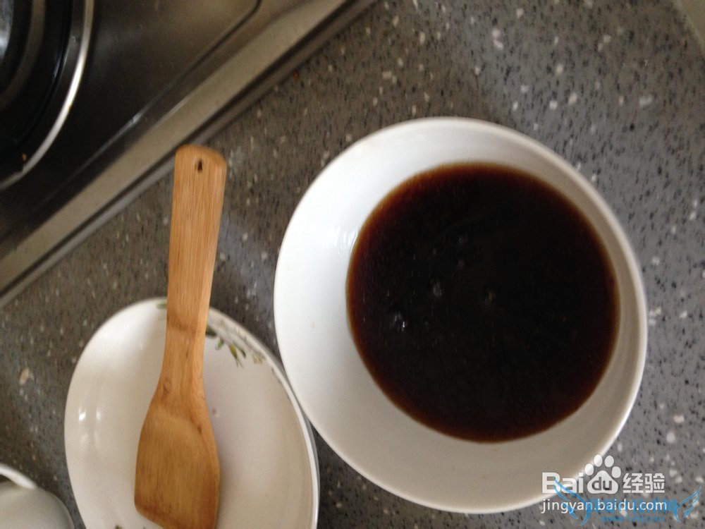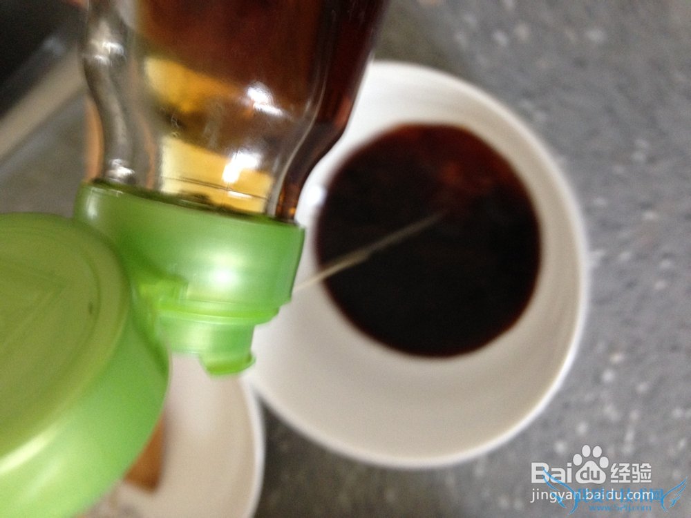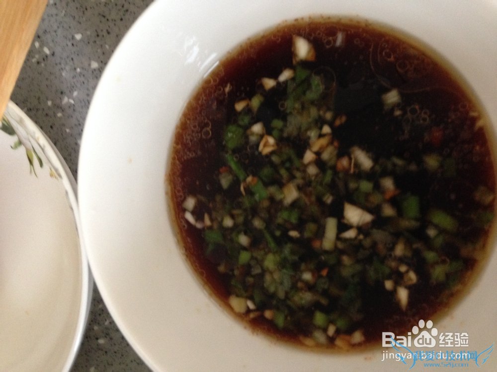 取一个小碗,将生抽、白糖、辣椒面、香油、蒜泥,水都放入碗中,然后加入糖浆搅匀,调成酱料。