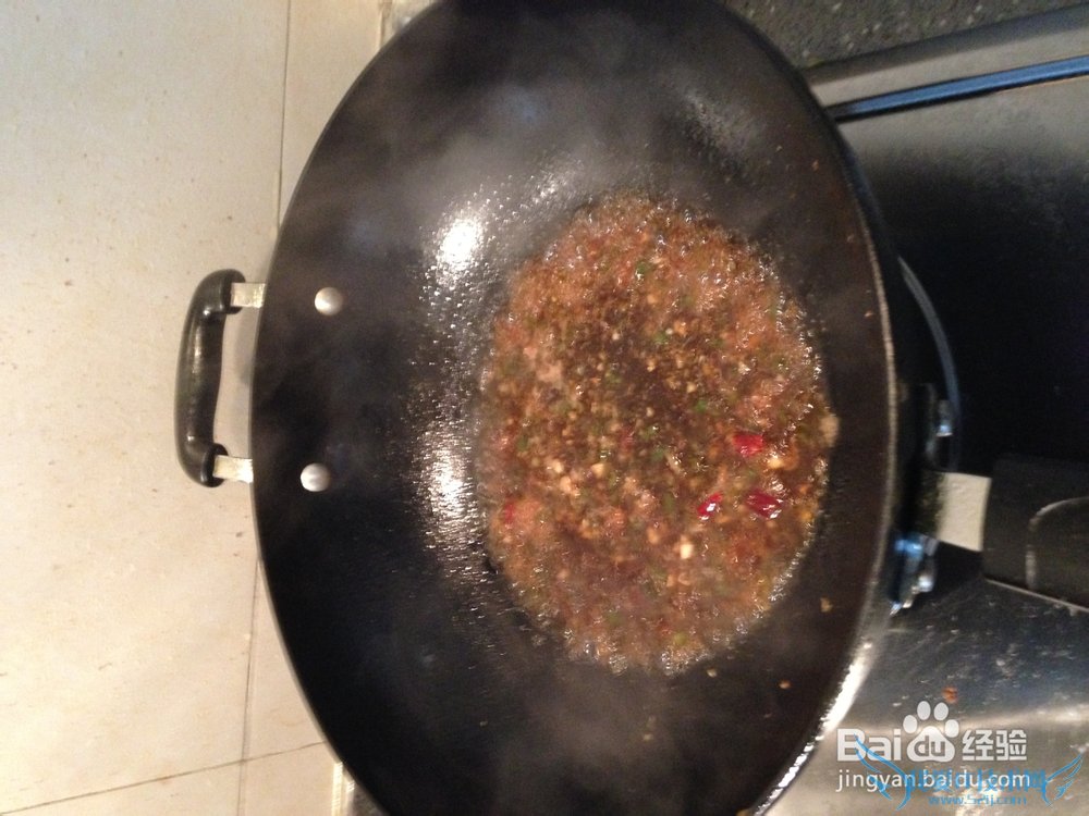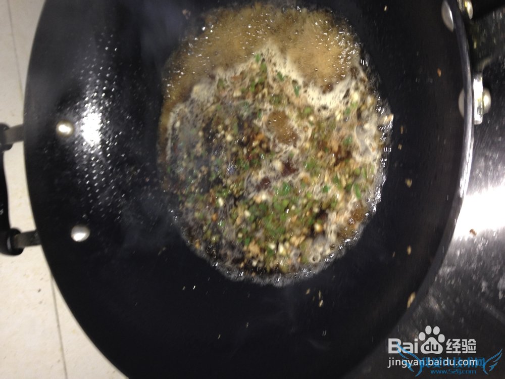 煎锅中留少许底油,待油温四成热的时候,将调好的酱料倒入,然后加入葱花和辣椒圈,小火煮至汤汁略稠,大约需要两分钟即可