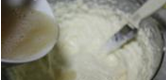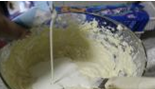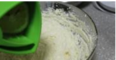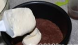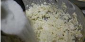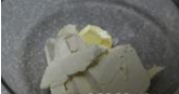 3. 把奶酪150克、黄油30克和绢豆腐一起放碗内,由于我没有事前解冻,所以用微波炉高火50秒,再用打蛋器搅拌均匀。