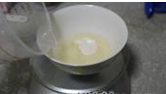 4. 16克鱼胶粉用凉的饮用水调开。想口感更软滑的话可减少几克鱼胶粉,但成型后蛋糕软化得比较快,不太方便切件。