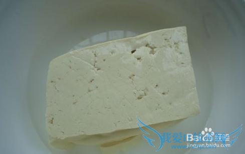 将豆腐用盐开水泡上十五分钟(目的是去掉一些卤水味,炒时不容易炒碎)