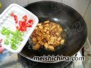 可乐没过豆腐;中小火焖煮10分钟。汤汁略收干,倒入青红椒。加入生抽提味。烧好的豆腐饱含可乐,口味鲜甜。