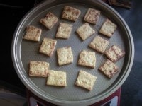 1.将豆腐切片,放入电饼铛煎制。