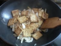 9.炒一会儿,让豆腐吸进汤汁。
