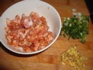 第二步:猪肉处理,把猪肉剁碎,用盐腌制10分钟,待用。