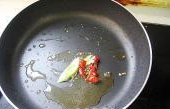 3. 利用煎豆腐剩的底油,爆香葱、干红椒。?