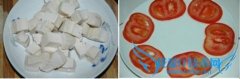 详细操作豆腐切小块备用。番茄切片,围盘边摆一圈。锅中加水,加浓汤宝,调至汤汁浓稠。倒入豆腐,加盐,蚝油,煮约6.7分钟后捞出入盘。在省下的汤汁中加一小把豆米...