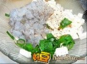 详细操作1把虾仁,老豆腐,葱叶都切碎,加盐,胡椒粉,芝麻油少许,拌匀。2把豆腐皮切下一条边儿,小心地打开,往里面塞调好的豆腐虾仁馅儿3塞满以后,在开口处,用...