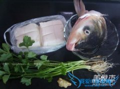 详细操作准备所需的材料把鱼头劈成两半锅里加油烧热,鱼头放在锅里煎同姜片放在锅中煎黄将锅中加数量的水煮15分钟嫩豆腐切块,香菜香葱切段煮15分钟后加豆腐,香菜香...