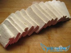 详细操作1将买回来的豆腐用温盐水浸泡,再将豆腐放入平底盘中,轻轻压放重物,静置约15分钟,沥干水份后将大块豆腐厚度剖半,再将每片豆腐1分为四,8块豆腐块拭干水...