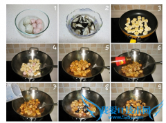 详细操作1丸子提前拿出自然解冻,以便烹饪的时候更容易入味儿;2鲜香菇洗净去蒂,入沸水中快速焯烫下后捞出沥干水分,切块;3豆腐切块,入抹油的平底锅中煎至两面黄;4...