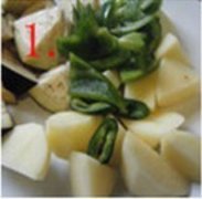 详细操作土豆去皮后和茄子洗净切成滚刀块;青椒去蒂,切成滚刀块;将除了盐以外的调味料放入碗里搅匀,备用锅中放油,大火烧热后,放入蒜茸和土豆块,将土豆煎至表面...