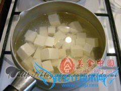 详细操作1豆腐下锅中焯熟后,切成2厘米的粒,鸡蛋打散在碗中,搅拌备用2锅中倒入适量的水和油,水开后,倒入切好的豆腐块3水再次开后,倒入玉米粒4将打散的鸡蛋倒入锅中,放...