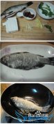 详细操作1鲫鱼清洗干净擦干水分,在鱼身两侧各划几刀;豆腐半盒切成适量大小的丁;姜切丝,蒜切丝,小葱打结;在鲫鱼的两面均匀抹层薄薄的面粉,锅中放油热到滚热,...