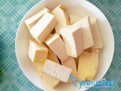 详细操作把豆腐清洗干净后,放在盘中。洗锅,点火,在锅中加入200ml左右的水,把火调到大火档。用刀把豆腐切成上下两块,放入盘中,等锅中的水烧滚后,把豆腐放入水...