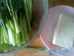 详细操作准备好原材料菠菜清洗干净,太长的掰成段豆腐切成块,放入加了适量盐的热水中泡着待用小葱切成小段锅里加入适量水烧开放入豆腐煮三分钟左右煮豆腐的同时另起...