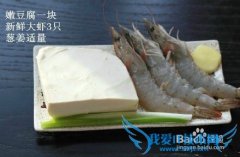 详细操作先准备好食材将豆腐切小块,虾去皮去虾线,开背,留头,虾尾留下,葱姜切末。如下图所示,葱姜爆锅,炒出虾油。加水放豆腐,稍微咕嘟一会。然后就可以放入虾...