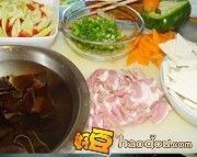 详细操作将咸肉用温水清洗几遍然后切成丁状。豆腐冲洗后切成2X2X2cm的正方体。平菇清洗后,有手撕成小块。将豆腐放入沸水中焯1分钟,然后捞出待用。将咸肉丁冷水下锅...