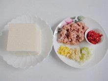 详细操作所有材料清洗干净2豆腐切成方块,猪肉切成片,加胡椒粉盐鸡精生粉略腌,其它材料切成块4面粉及生粉以1:1的比例混合,锅中放油烧热,将豆腐均匀的粘上拌匀的...