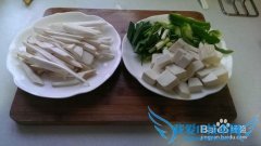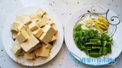 详细操作首先,将豆腐切成1厘米左右的小块,辣椒切块,姜切丝,蒜切片备用,淀粉加入适量的清水,搅匀,备用。锅中加入凉水,并加入1勺盐,烧开,将切好的豆腐放入锅...