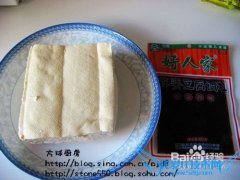 详细操作首先我们先准备好材料锅里放水,放入豆腐和少许盐煮沸把煮好的豆腐捞出过凉,切成四方型的块,然后用盐均匀的腌30分钟锅里放油,中小火下豆腐煎至一面金黄,...