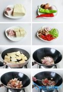 详细操作香菇洗净,切片,青红洗净,椒切丝,洋葱切;豆腐切块(也可用豆皮),肉切丝;将千叶豆腐放入锅中煎至两面金黄;锅内留少许油,放入姜、蒜、五花肉煸出油;...
