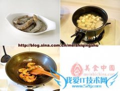 详细操作1豆腐切成1.5厘米见方的小块,放入开水中,加入少许盐浸泡10分钟。2大虾挑去虾线(用牙签从虾身的倒数第一节与倒数第二节中间穿过,然后轻轻挑出虾线就可以...