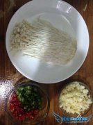 详细操作首先我们要准备好材料,金针菇,大蒜,青椒,红椒。然后先在碟子上铺上部分的大蒜和辣椒。在碟子底部放上配料是可以让金针菇更香更入味。再铺上金针菇,摆盘...